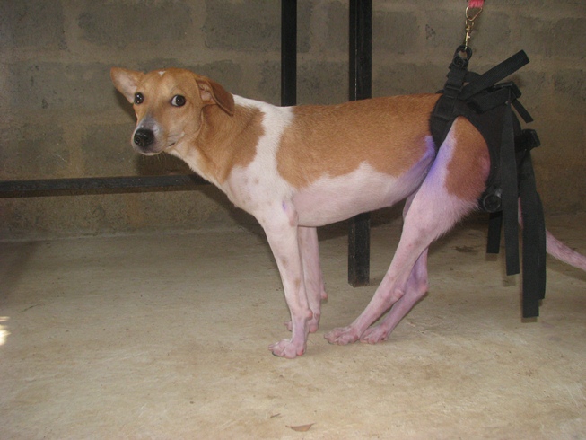 A bullet lodged in her spine, Ally came to us defeated and struggling to walk. Her hind legs were found to have been completely paralyzed and feet injured due to her unsuccessful attempts to walk. However, over the two years that she has been with us, Ally has changed dramatically and now walks with the help of a cart.