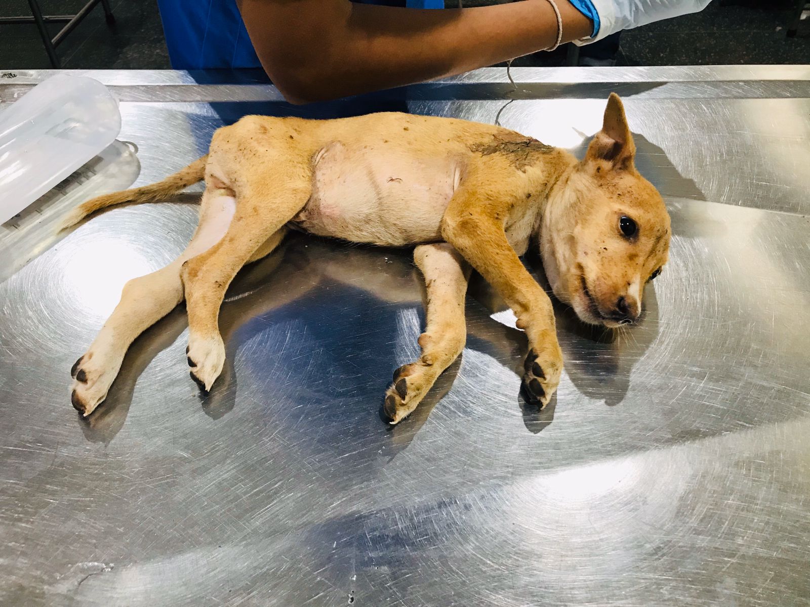 Pip was brought in by a kind human being who found him on the streets. He was partially paralysed due to a spinal fracture and had multiple dog bite wounds on him.