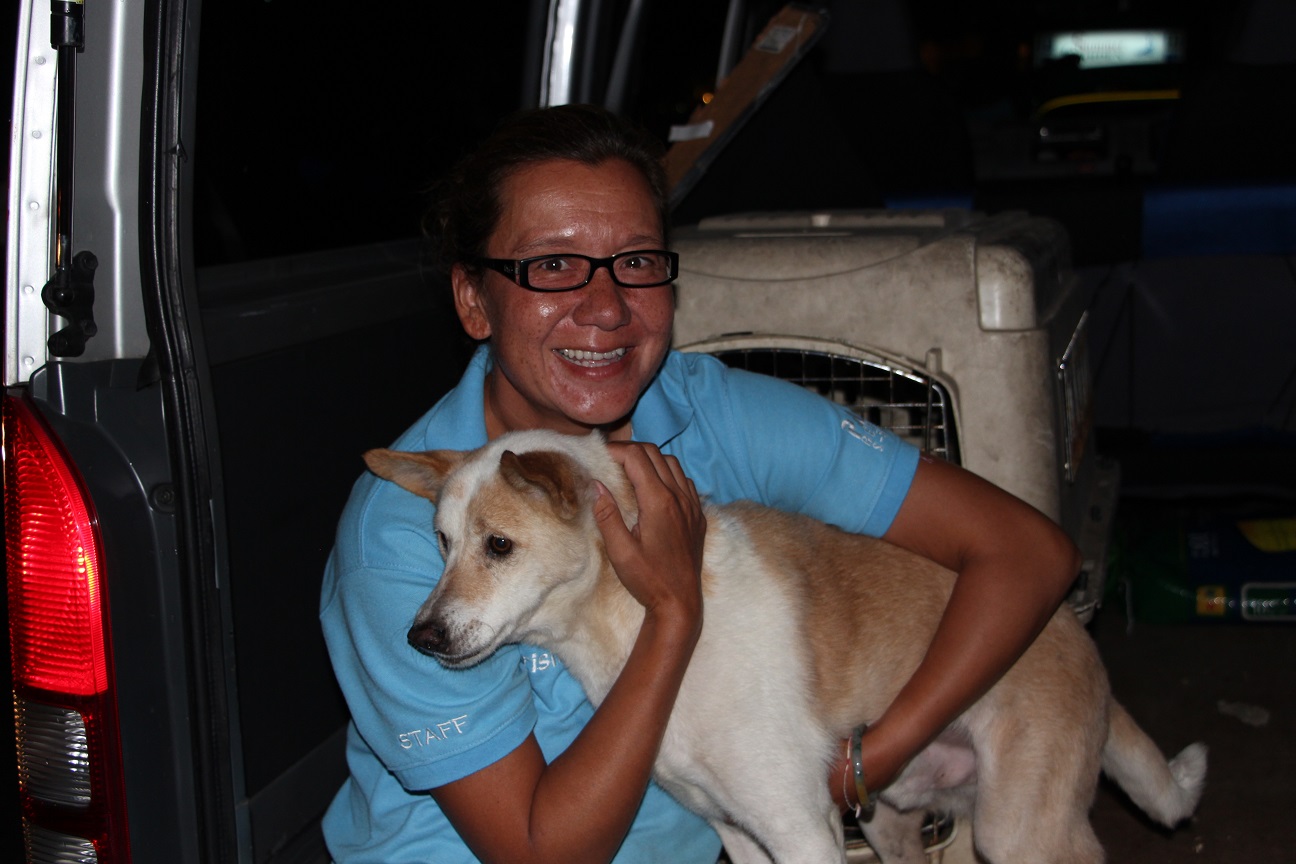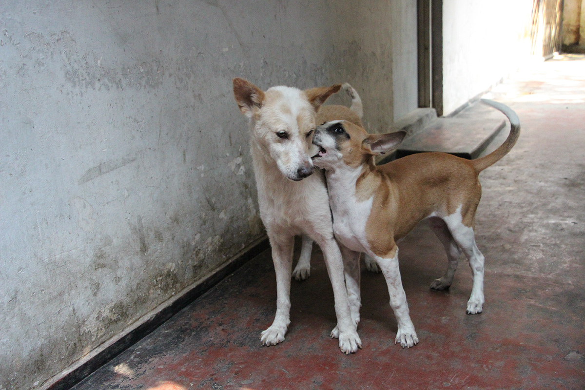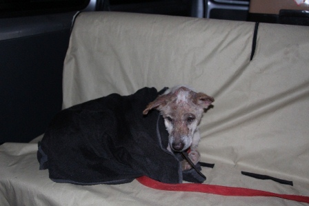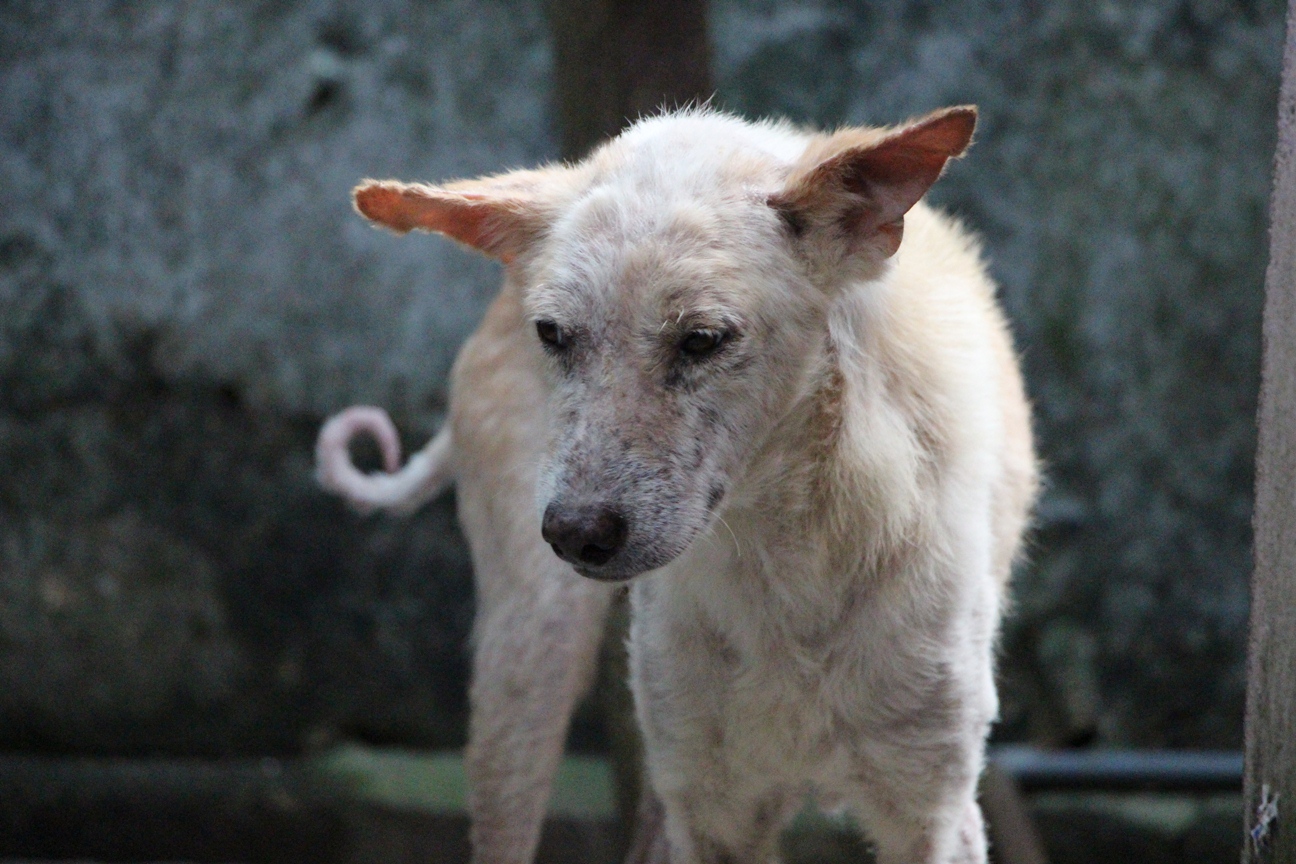 Nick and Trisha, two diving instructors moved to Unawatuna last year. They noticed a scruffylooking dog who had no fur roaming around the premises. They contacted us and we went all the way to Unawatuna to pick this guy up.